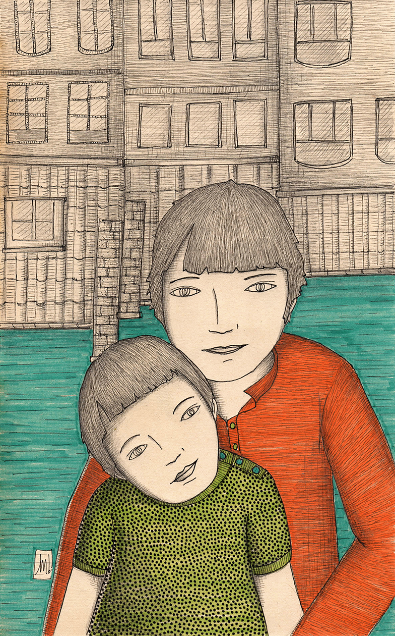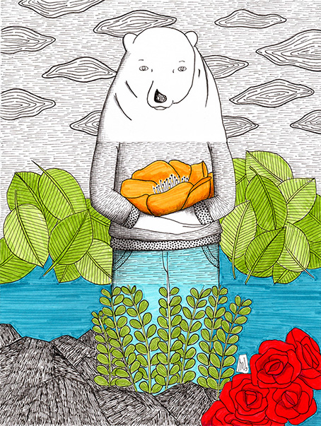Portrait au poisson aux orties . 21 par 27,7 cm