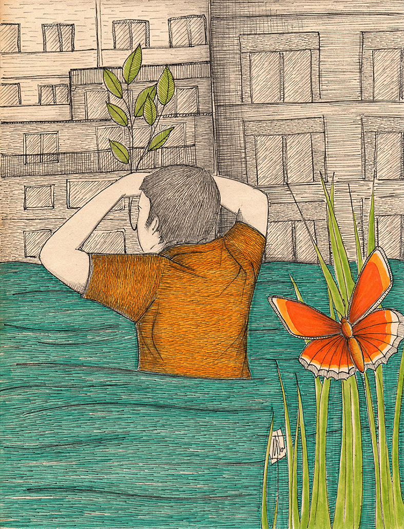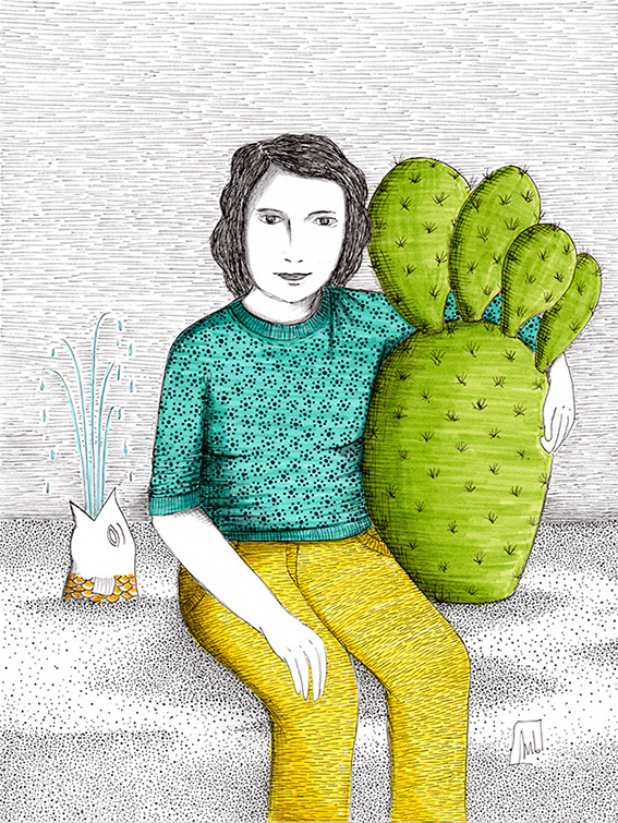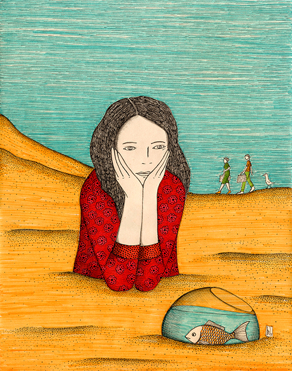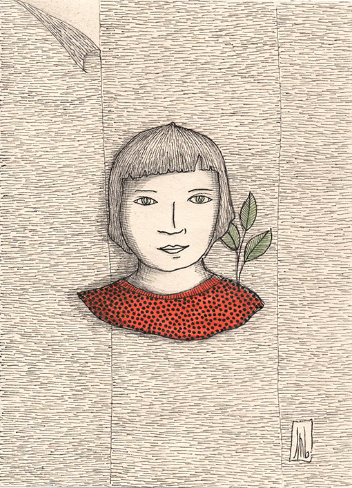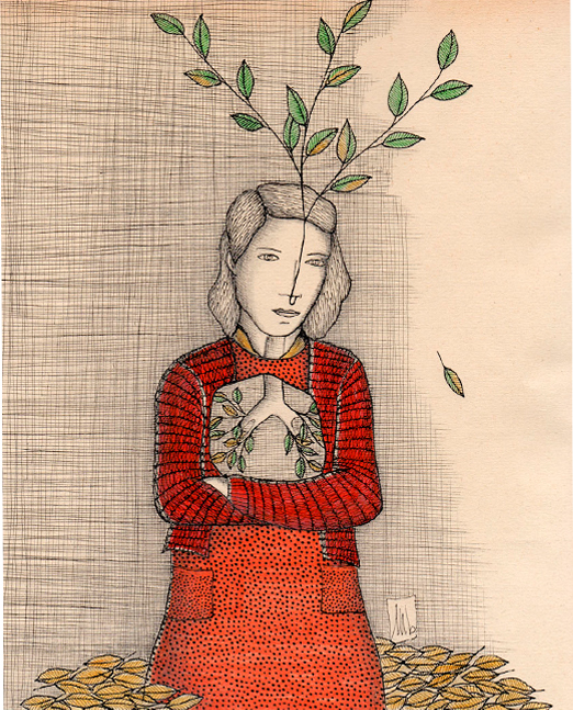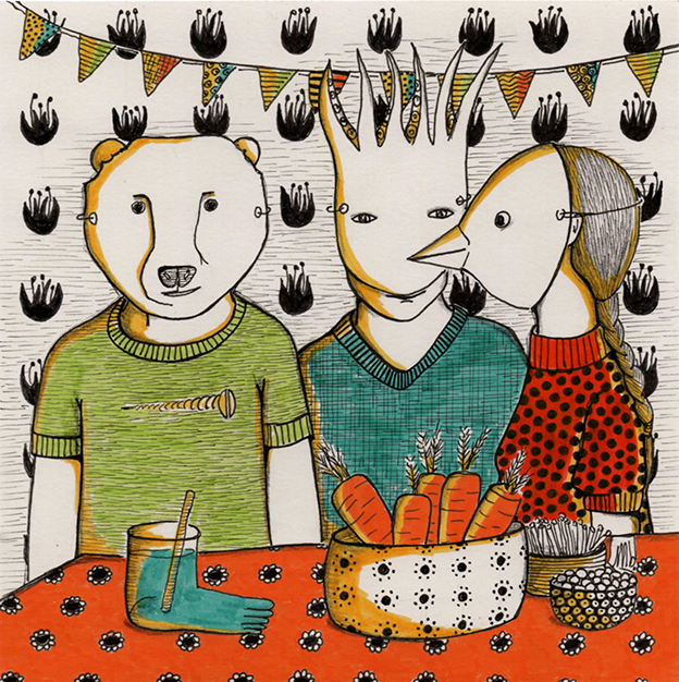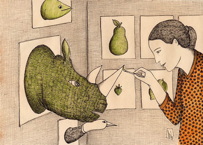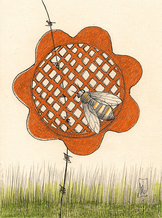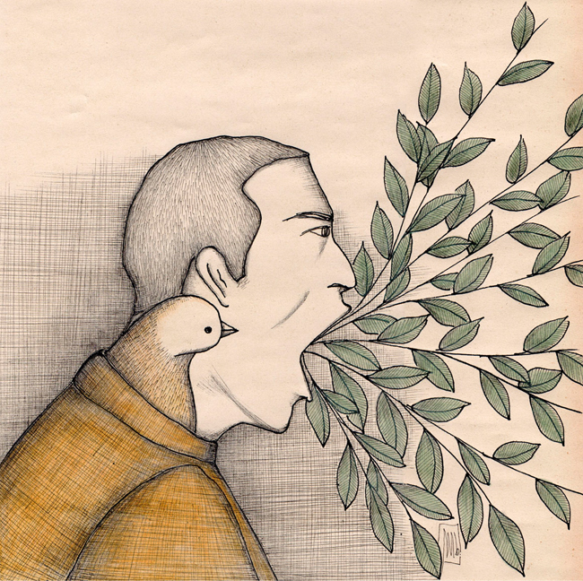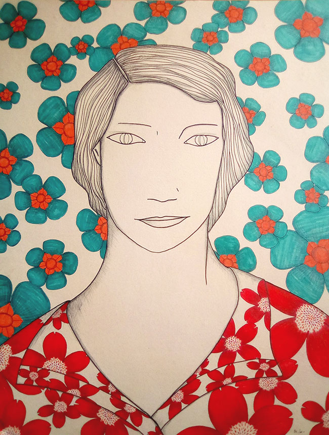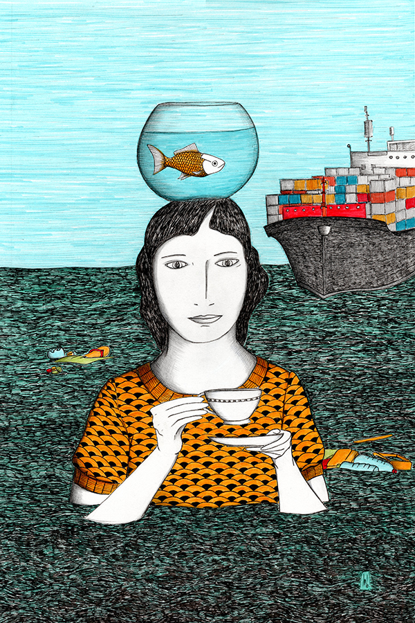 Portrait au poisson aux orties . 21 par 27,7 cm