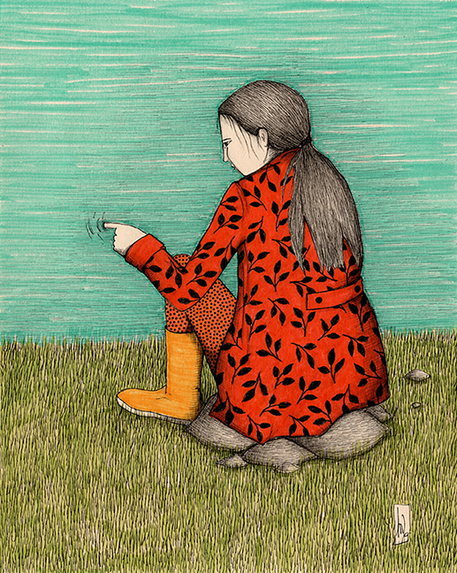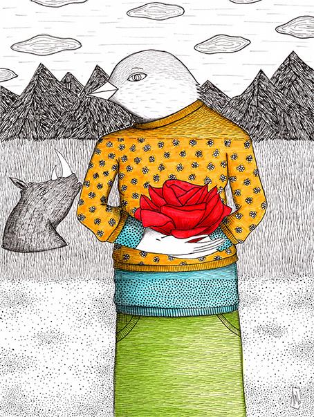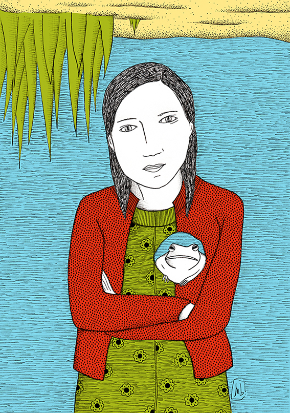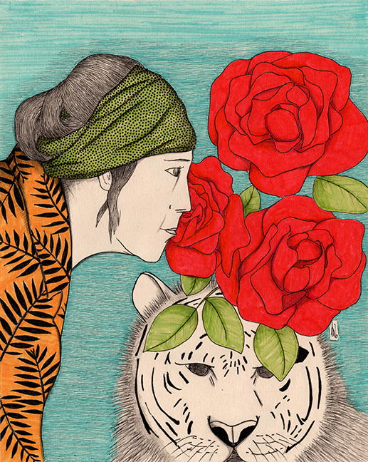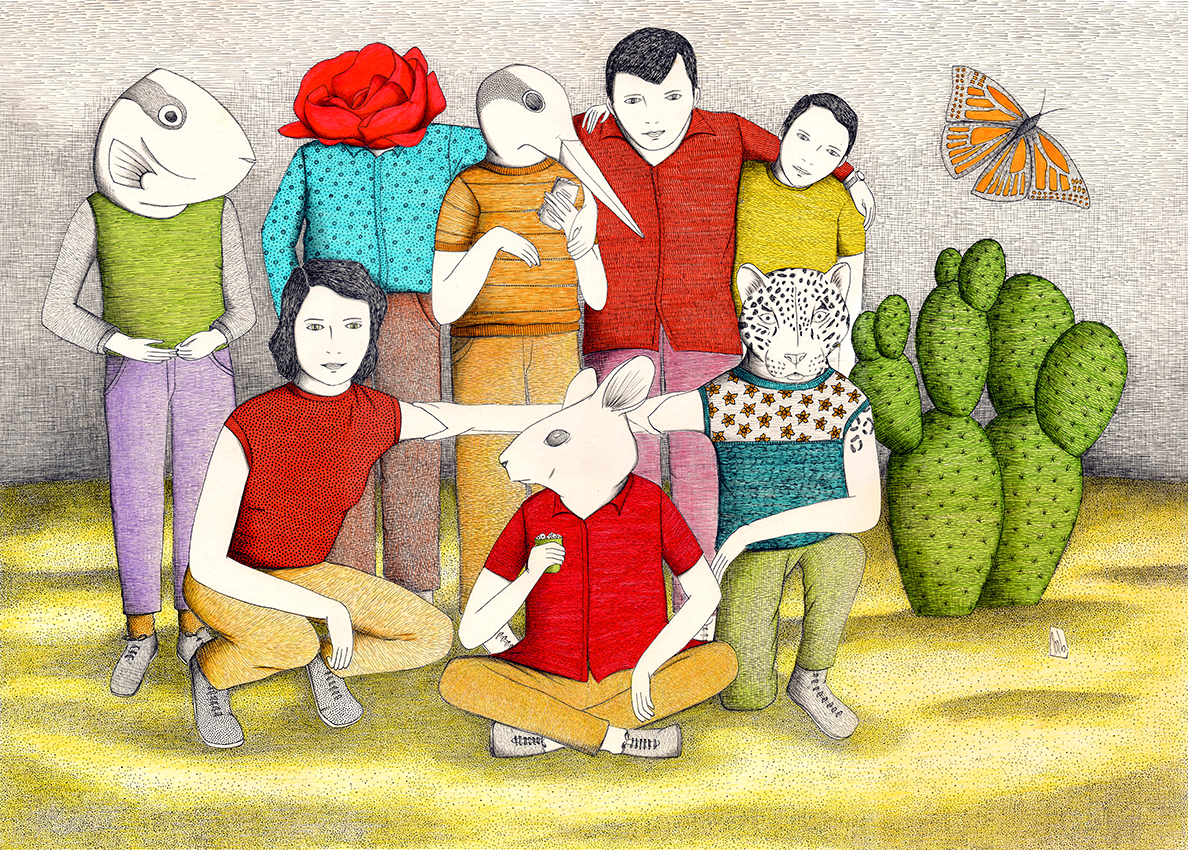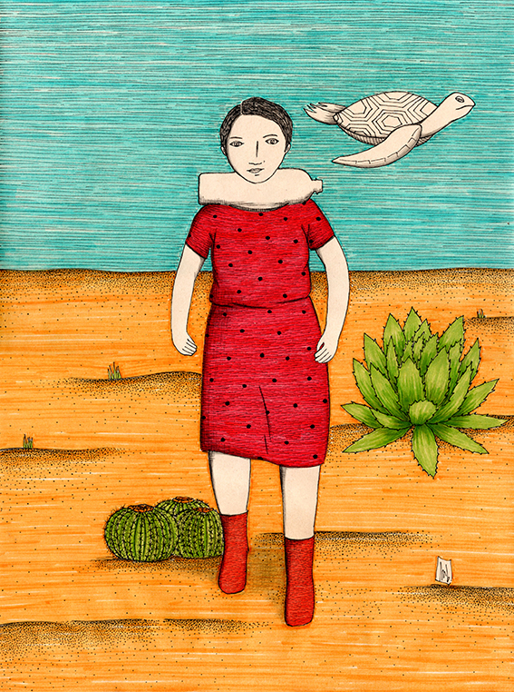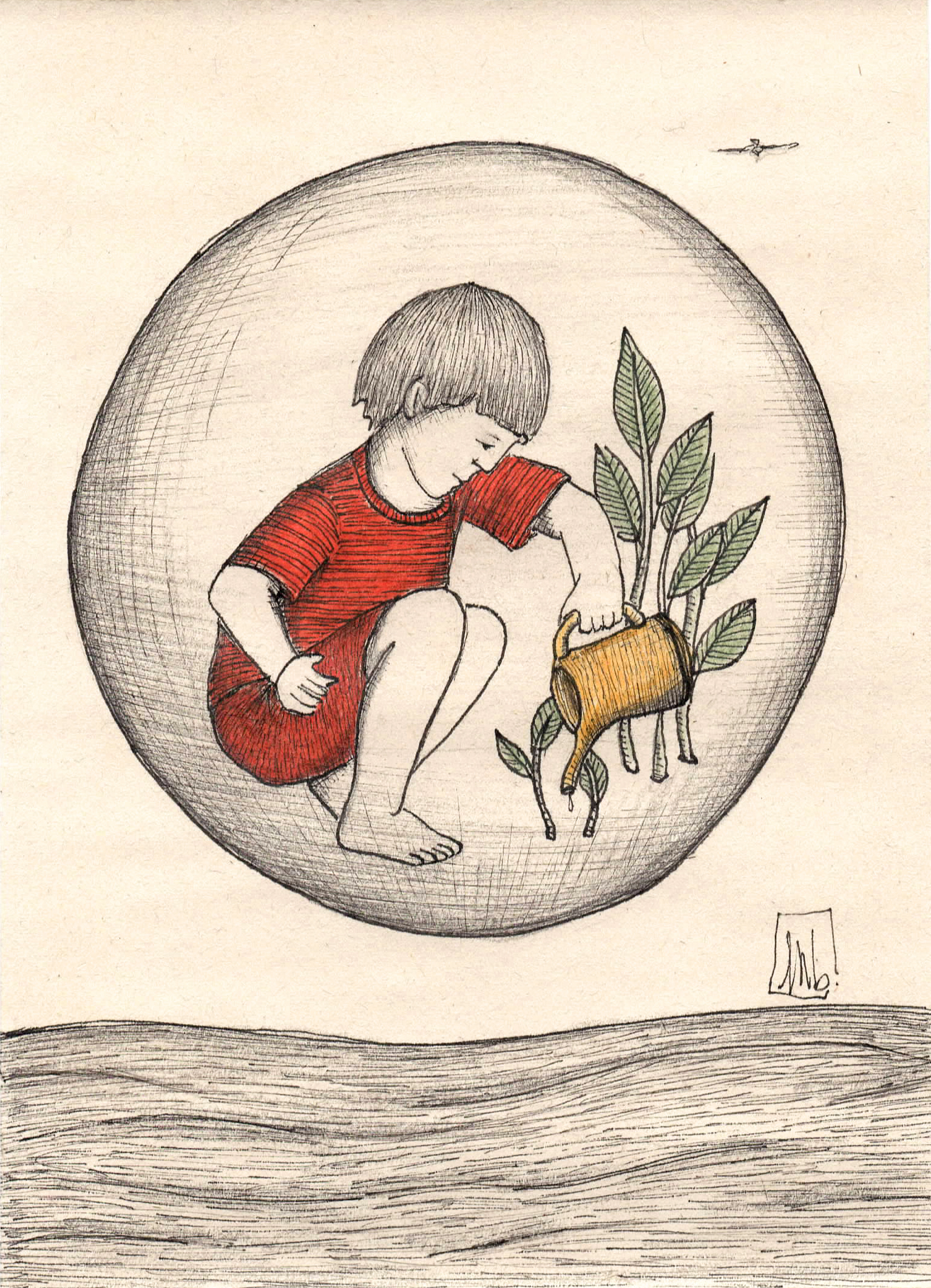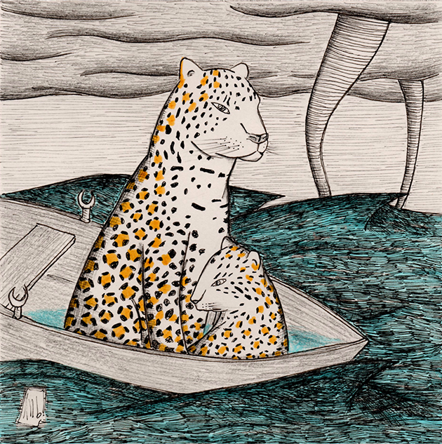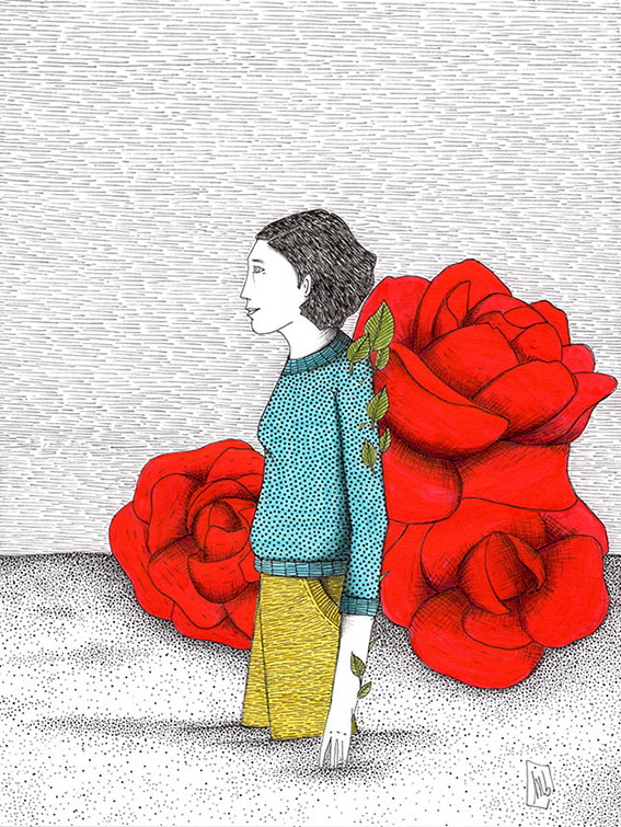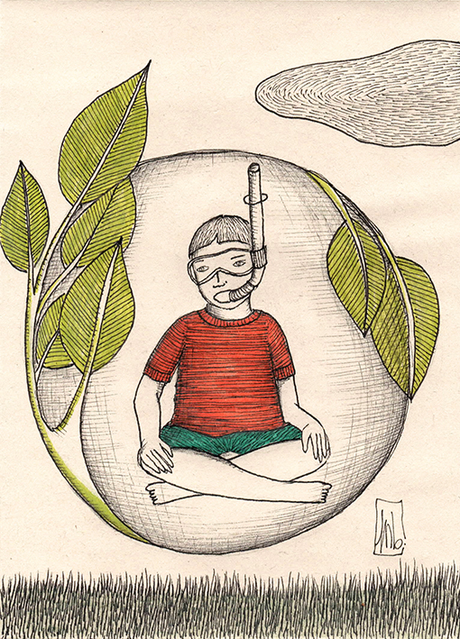 Portrait au poisson aux orties . 21 par 27,7 cm