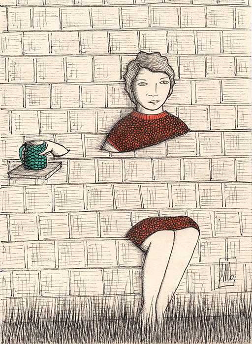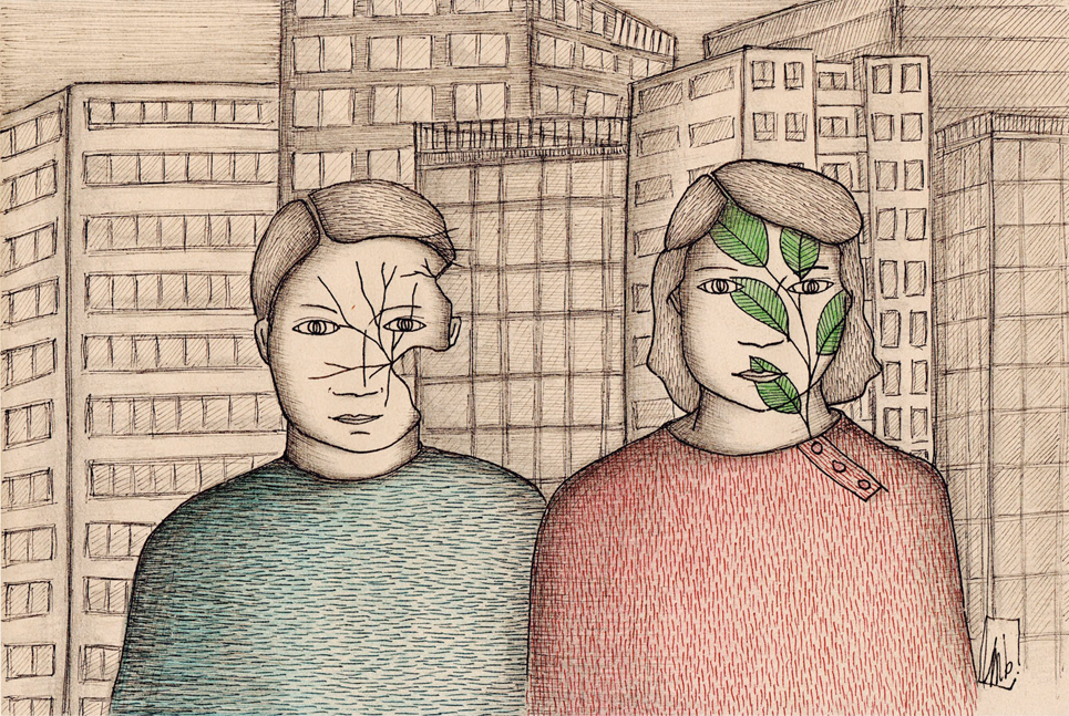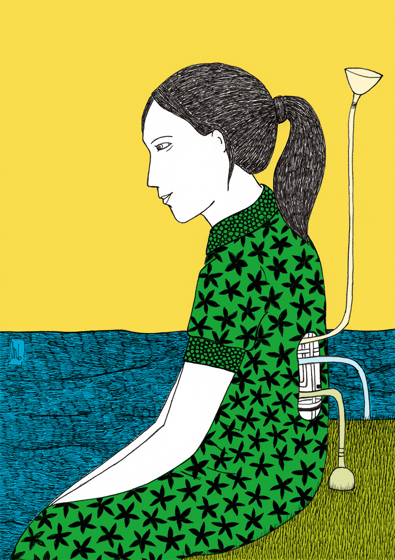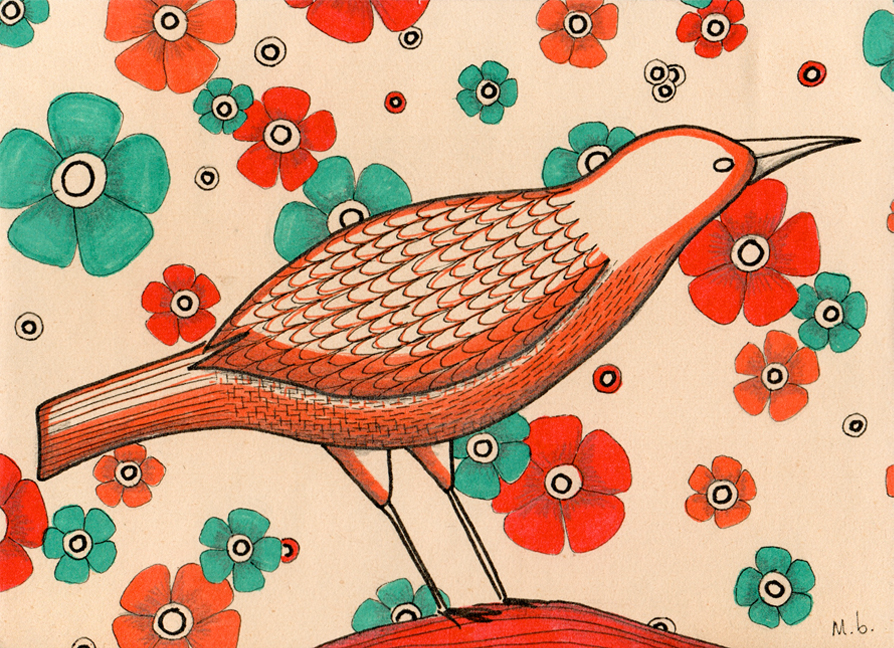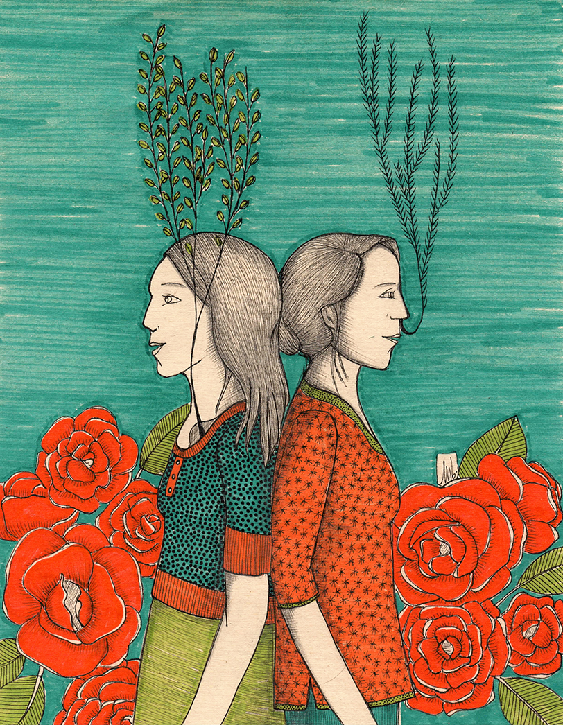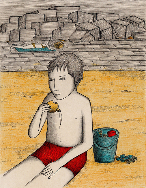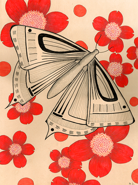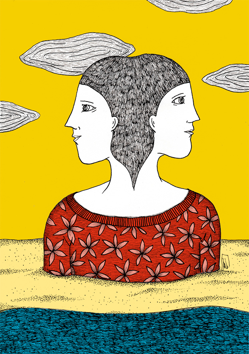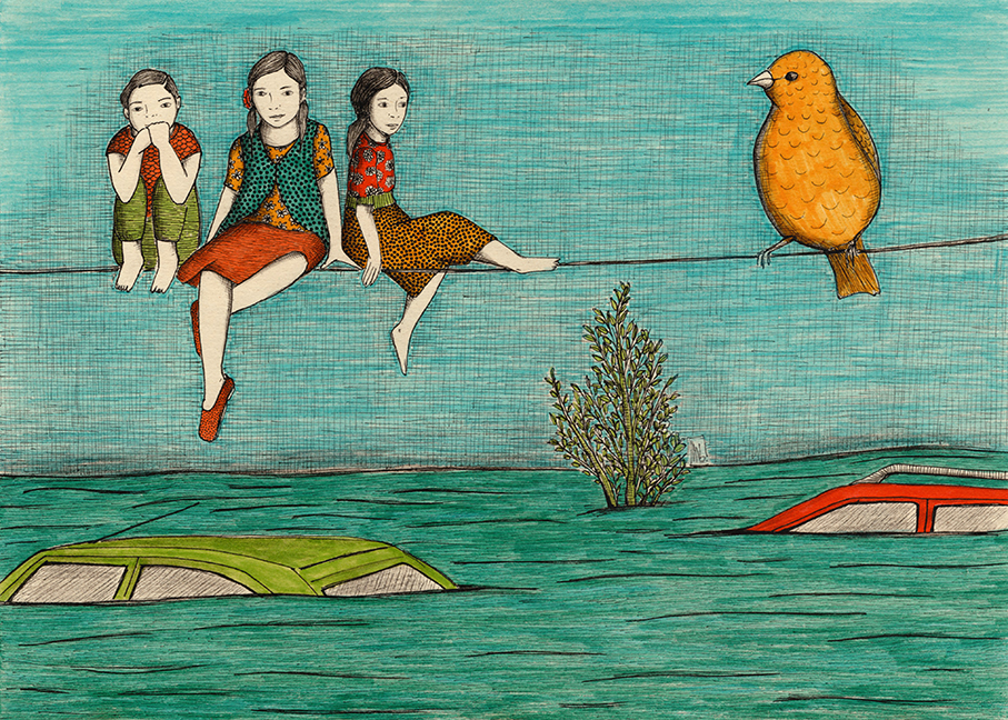 Portrait au poisson aux orties . 21 par 27,7 cm