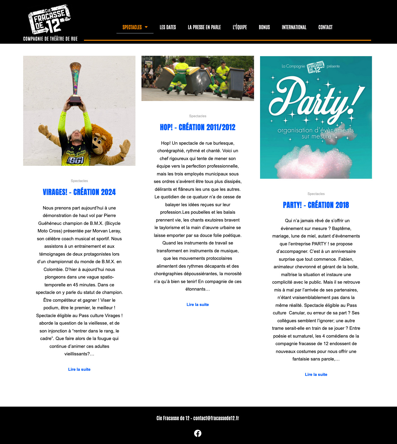 création graphique du site internet de la Compagnie de théâtre de rue Fracasse de 12